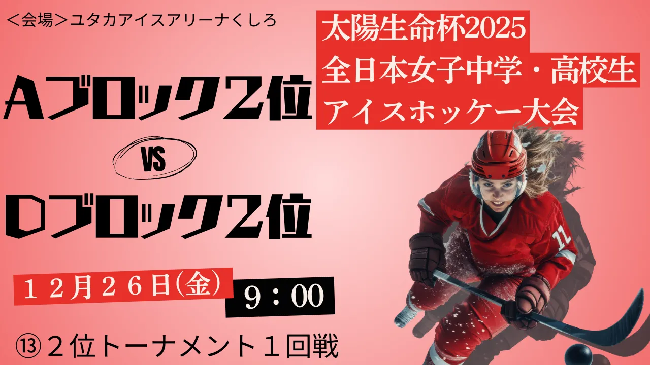 2025年12月26日(金)|太陽生命杯2025 全日本女子中学・高校生アイスホッケー大会|2位トーナメント1回戦|⑬|Aブロック2位 vs Dブロック2位