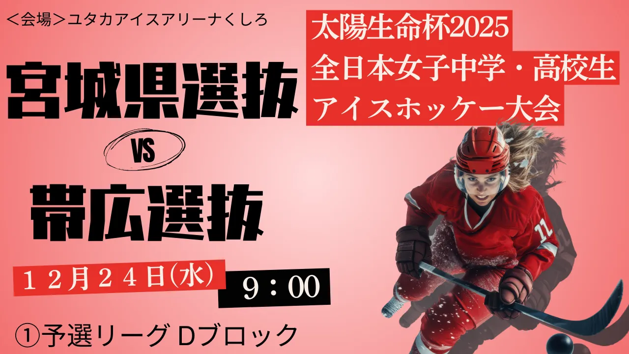 2025年12月24日(水)|太陽生命杯2025 全日本女子中学・高校生アイスホッケー大会|予選Dブロック|①|宮城県選抜 vs 帯広選抜