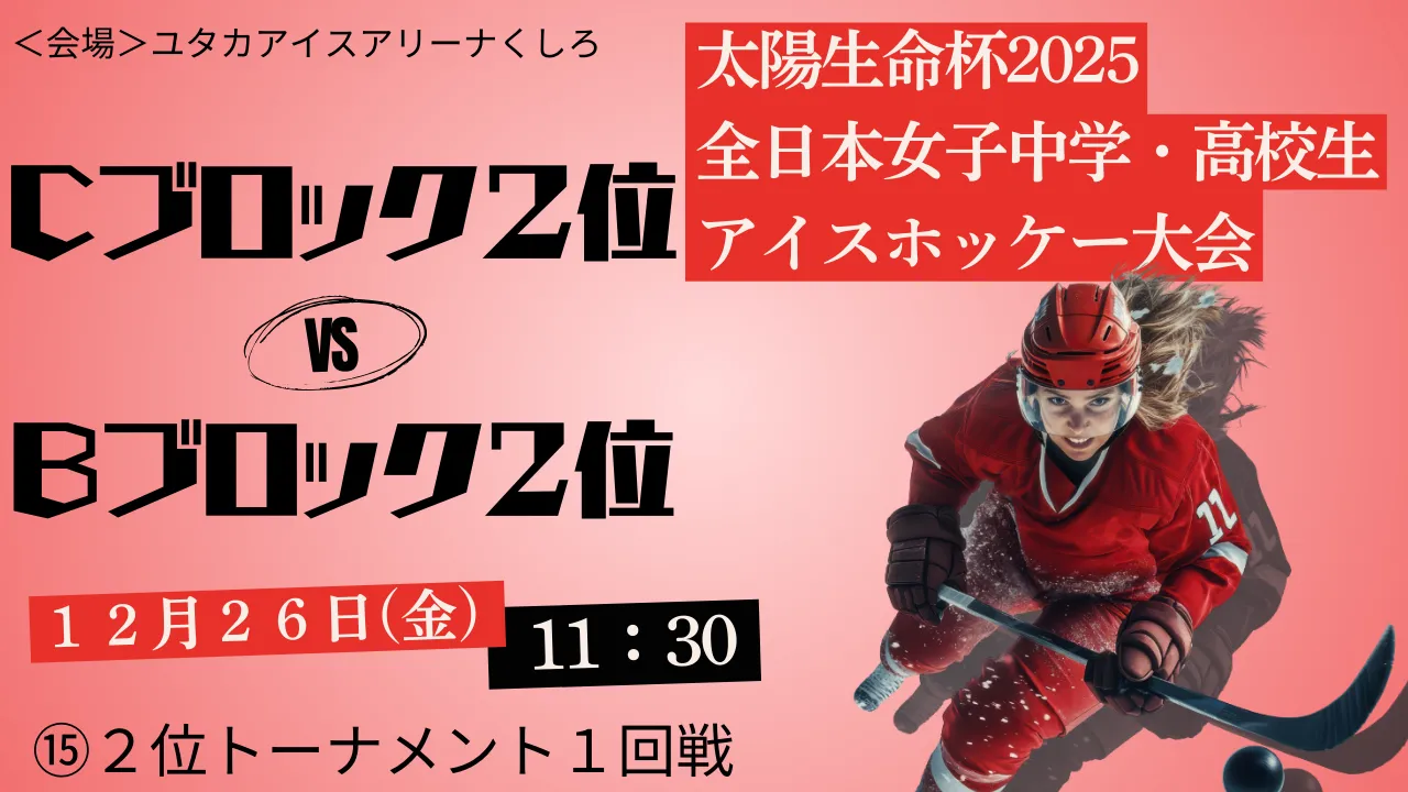 2025年12月26日(金)|太陽生命杯2025 全日本女子中学・高校生アイスホッケー大会|2位トーナメント1回戦|⑮|Cブロック2位 vs Bブロック2位