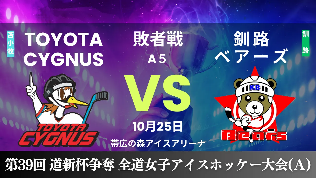 2025年10月25日(土)|第39回 道新杯争奪 全道女子アイスホッケー大会(A)|A⑤敗者戦|TOYOTA CYGNUS vs 釧路ベアーズ