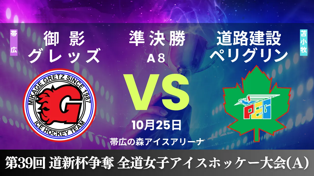 "2025年10月25日(土)|第39回 道新杯争奪 全道女子アイスホッケー大会(A)|A⑧準決勝|御影グレッズ vs 道路建設ぺリグリン