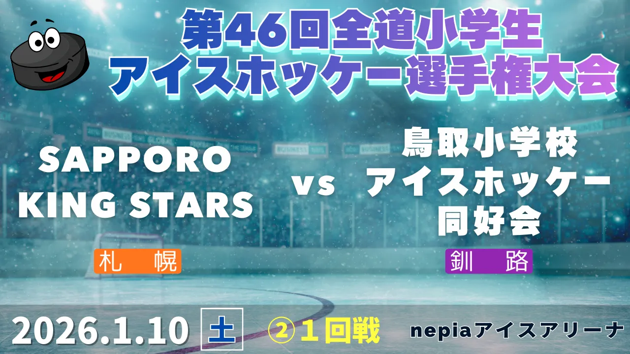 2026年1月10日(土)|第46回全道小学生アイスホッケー選手権大会|②|1回戦|SAPPORO KING STARS vs 鳥取小学校アイスホッケー同好会