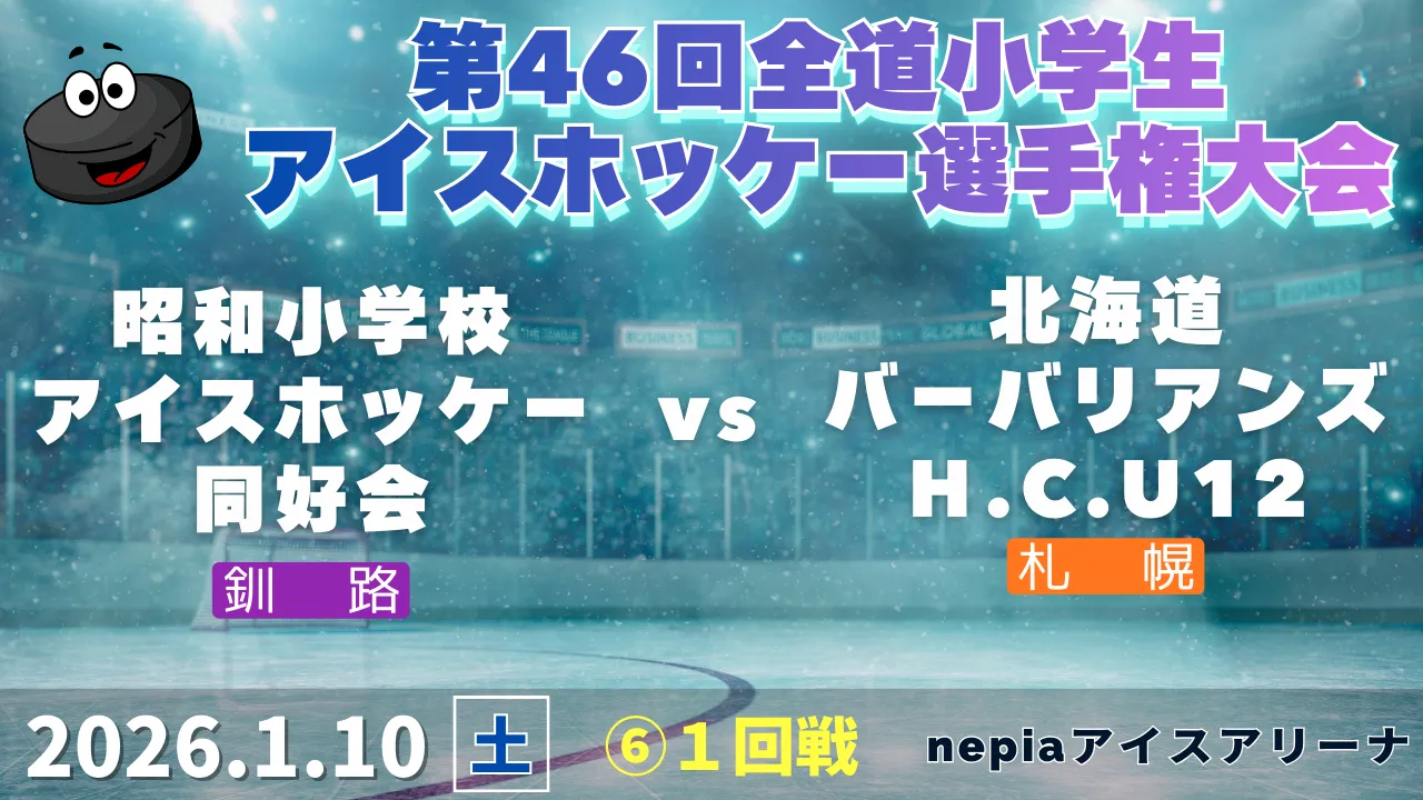 2026年1月10日(土)|第46回全道小学生アイスホッケー選手権大会|⑥|1回戦|昭和小学校アイスホッケー同好会 vs 北海道バーバリアンズH.C.U12