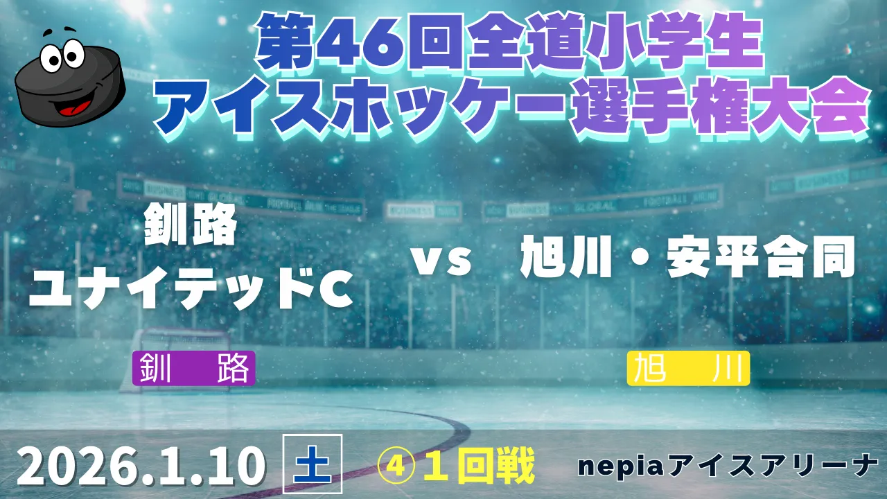 2026年1月10日(土)|第46回全道小学生アイスホッケー選手権大会|④|1回戦|釧路ユナイテッドC vs 旭川・安平合同