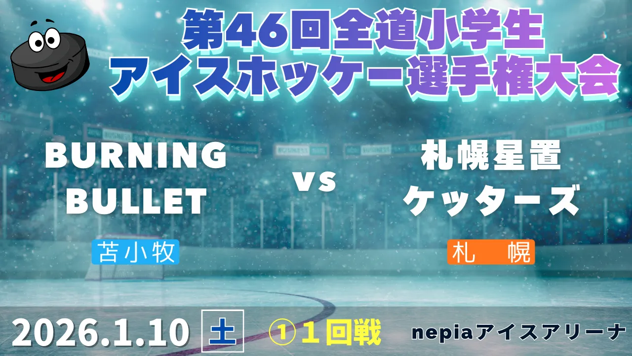 2026年1月10日(土)|第46回全道小学生アイスホッケー選手権大会|①|1回戦|BURNING BULLET vs 札幌星置ケッターズ