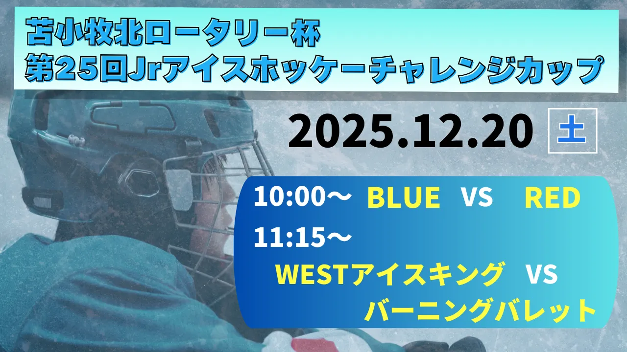 2025年12月20日(土)|苫小牧北ロータリー杯 第25回Jrアイスホッケーチャレンジカップ|BLUEvsRED|WESTアイスキングvsバーニングバレット