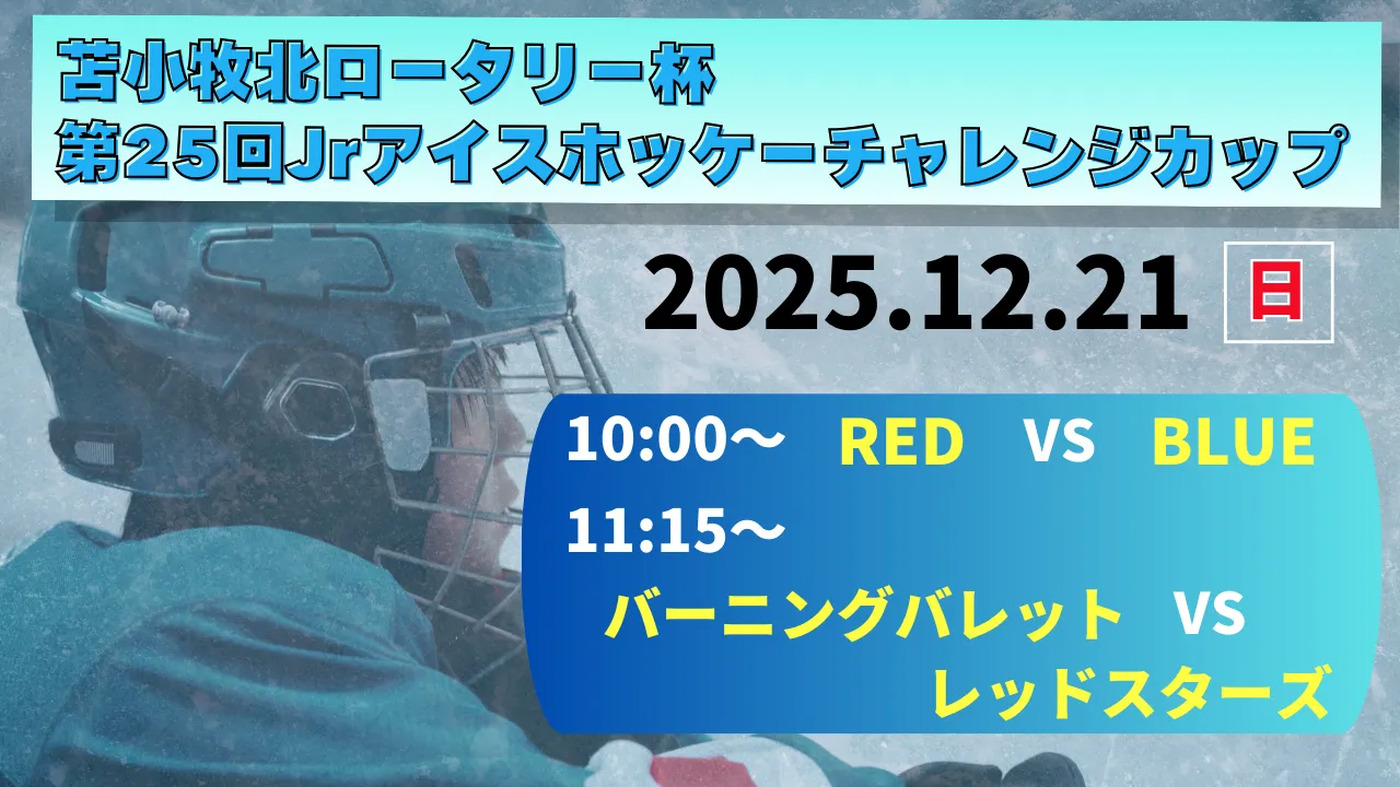 2025年12月21日(日)|苫小牧北ロータリー杯第25回Jrアイスホッケーチャレンジカップ|REDvsBLUE|バーニングバレットvsレッドスターズ