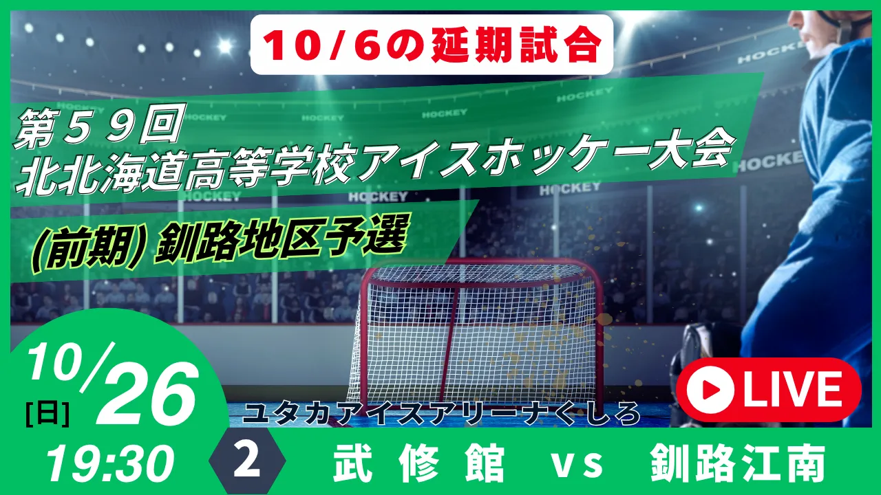 【試合延期】2025年10月6日(月)|第59回 北北海道高等学校アイスホッケー大会 (前期)釧路地区予選|②|武修館 vs 釧路江南