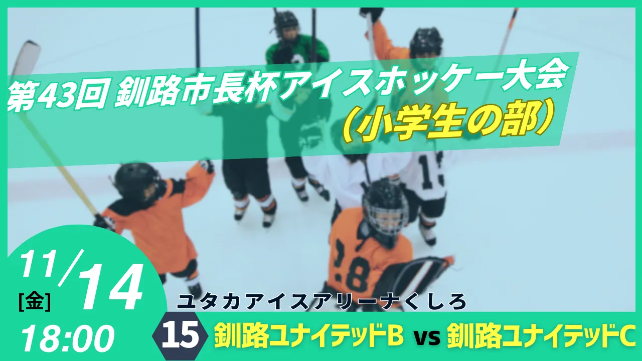 2025年11月14日(金)|第43回釧路市⾧杯アイスホッケー大会(小学生の部)|⑮|釧路ユナイテッドB vs 釧路ユナイテッドC