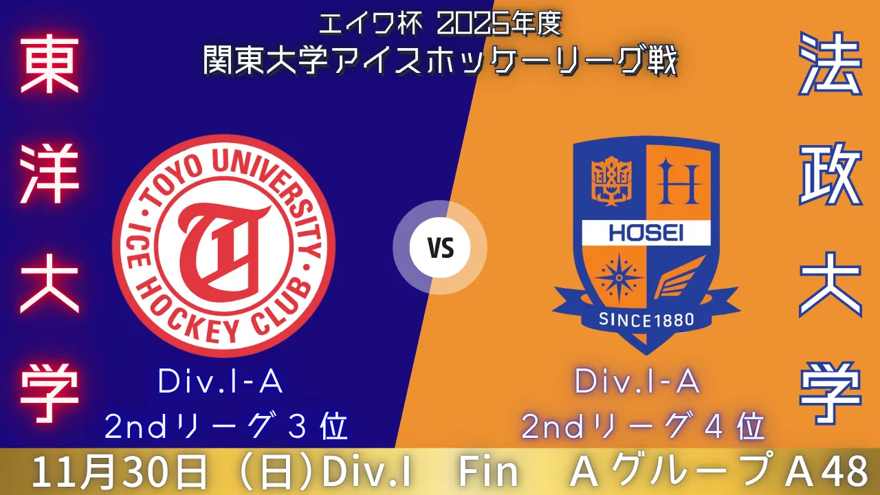 2025年11月30日(日)|エイワ杯 2025年度 関東大学アイスホッケーリーグ戦|A48|東洋大学 vs 法政大学