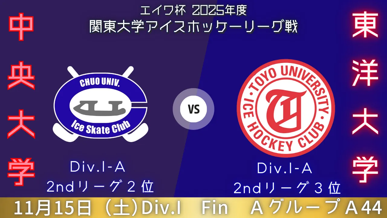 2025年11月15日(土)|エイワ杯 2025年度 関東大学アイスホッケーリーグ戦|A44|中央大学 vs 東洋大学
