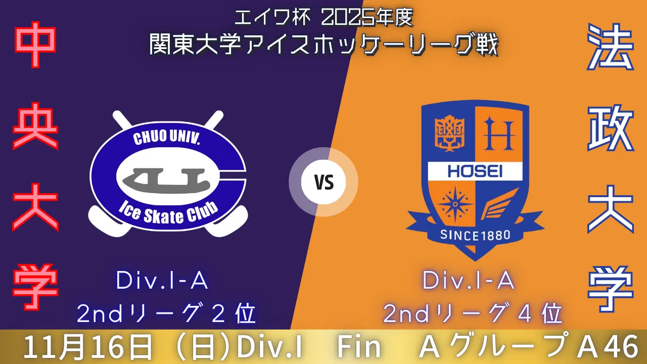 2025年11月16日(日)|エイワ杯 2025年度 関東大学アイスホッケーリーグ戦|A46|中央大学 vs 法政大学