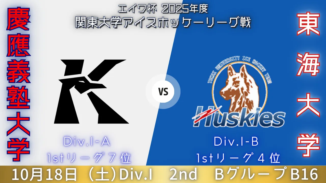 2025年10月18日(土)|エイワ杯 2025年度 関東大学アイスホッケーリーグ戦|B16|慶応義塾大学 vs 東海大学