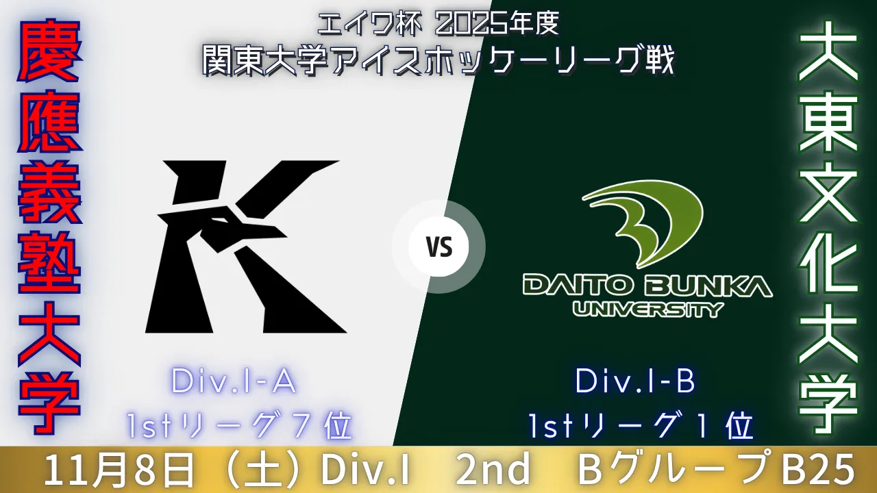 2025年11月8日(土)|エイワ杯 2025年度 関東大学アイスホッケーリーグ戦|B25|慶應義塾大学 vs 大東文化大学