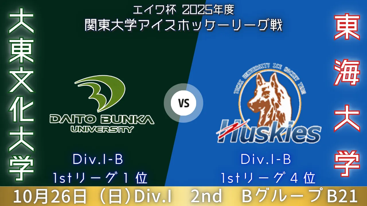2025年10月26日(日)|エイワ杯 2025年度 関東大学アイスホッケーリーグ戦|B21|大東文化大学 vs 東海大学