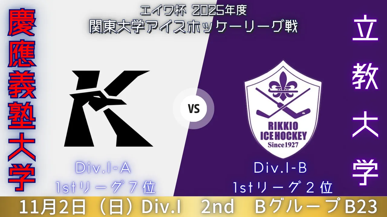 2025年11月2日(日)|エイワ杯 2025年度 関東大学アイスホッケーリーグ戦|B23|慶應義塾大学 vs 立教大学