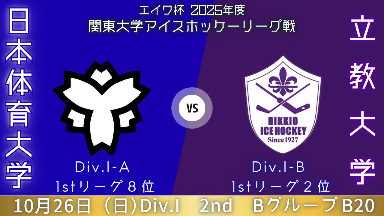 2025年10月26日(日)|エイワ杯 2025年度 関東大学アイスホッケーリーグ戦|B20|日本体育大学 vs 立教大学