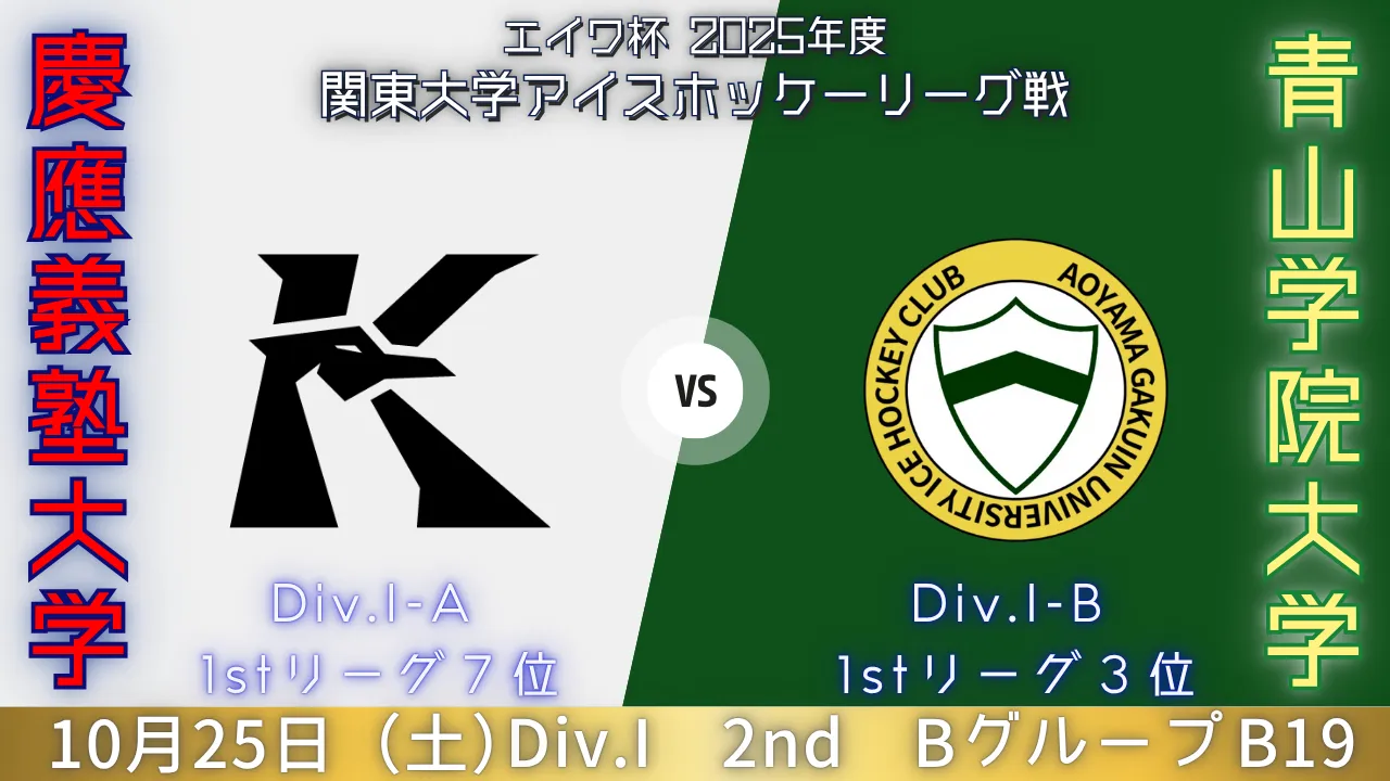 2025年10月25日(土)|エイワ杯 2025年度 関東大学アイスホッケーリーグ戦|B19|慶應義塾大学 vs 青山学院大学
