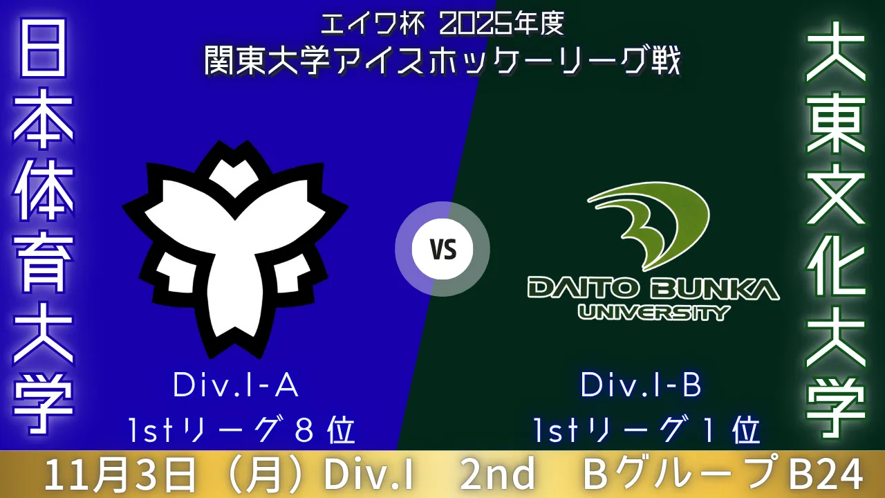 2025年11月3日(月)|エイワ杯 2025年度 関東大学アイスホッケーリーグ戦|B24|日本体育大学 vs 大東文化大学