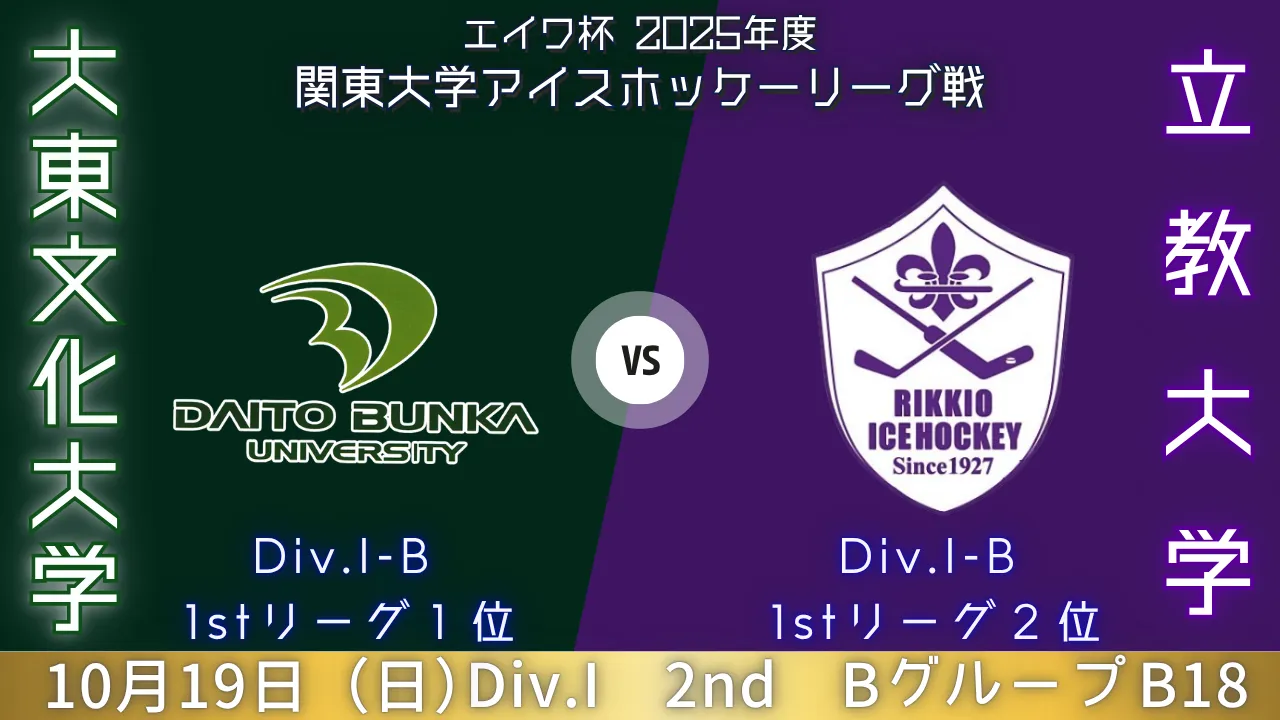 2025年10月19日(日)|エイワ杯 2025年度 関東大学アイスホッケーリーグ戦|B18|大東文化大学 vs 立教大学