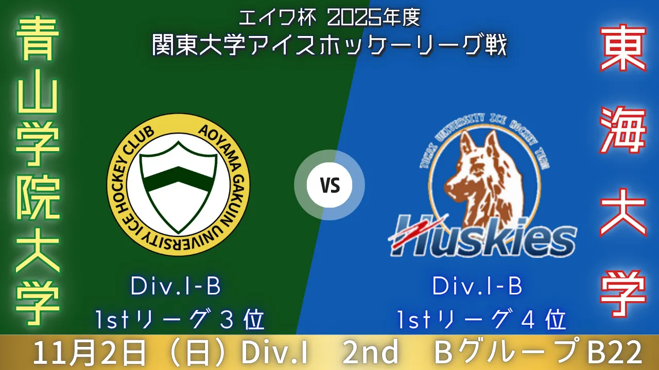 2025年11月2日(日)|エイワ杯 2025年度 関東大学アイスホッケーリーグ戦|B22|青山学院大学 vs 東海大学