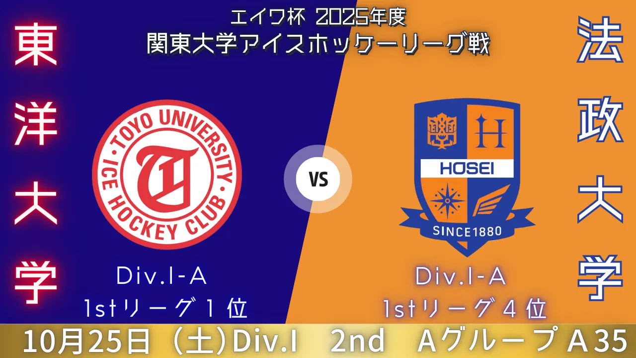 2025年10月25日(土)|エイワ杯 2025年度 関東大学アイスホッケーリーグ戦|A35|東洋大学 vs 法政大学