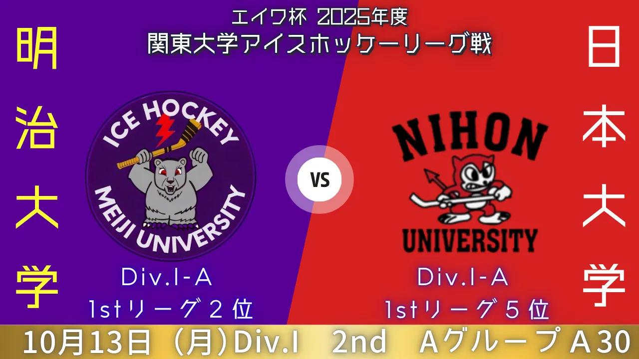 2025年10月13日(月)|エイワ杯 2025年度 関東大学アイスホッケーリーグ戦|A30|明治大学 vs 日本大学