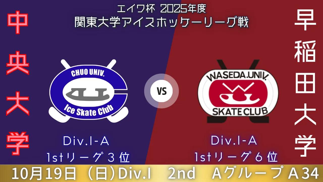 2025年10月19日(日)|エイワ杯 2025年度 関東大学アイスホッケーリーグ戦|A34|中央大学 vs 早稲田大学