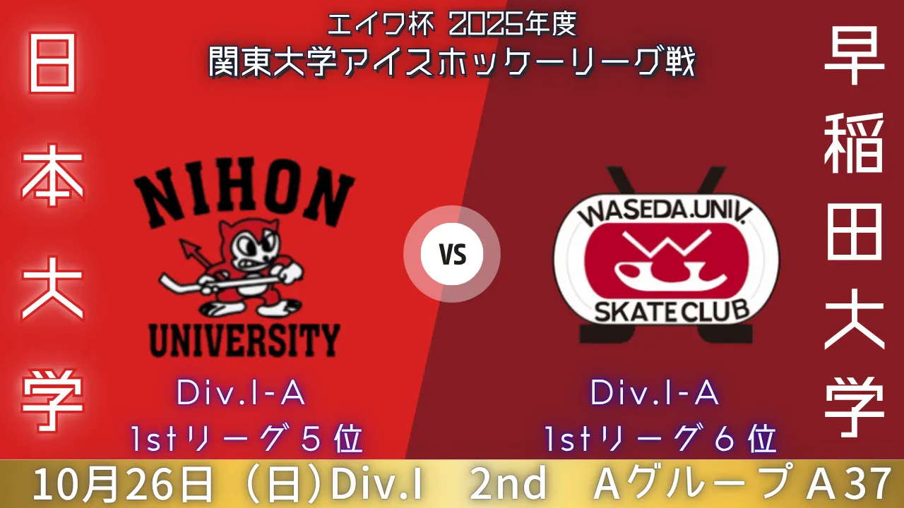 2025年10月26日(日)|エイワ杯 2025年度 関東大学アイスホッケーリーグ戦|A37|日本大学 vs 早稲田大学