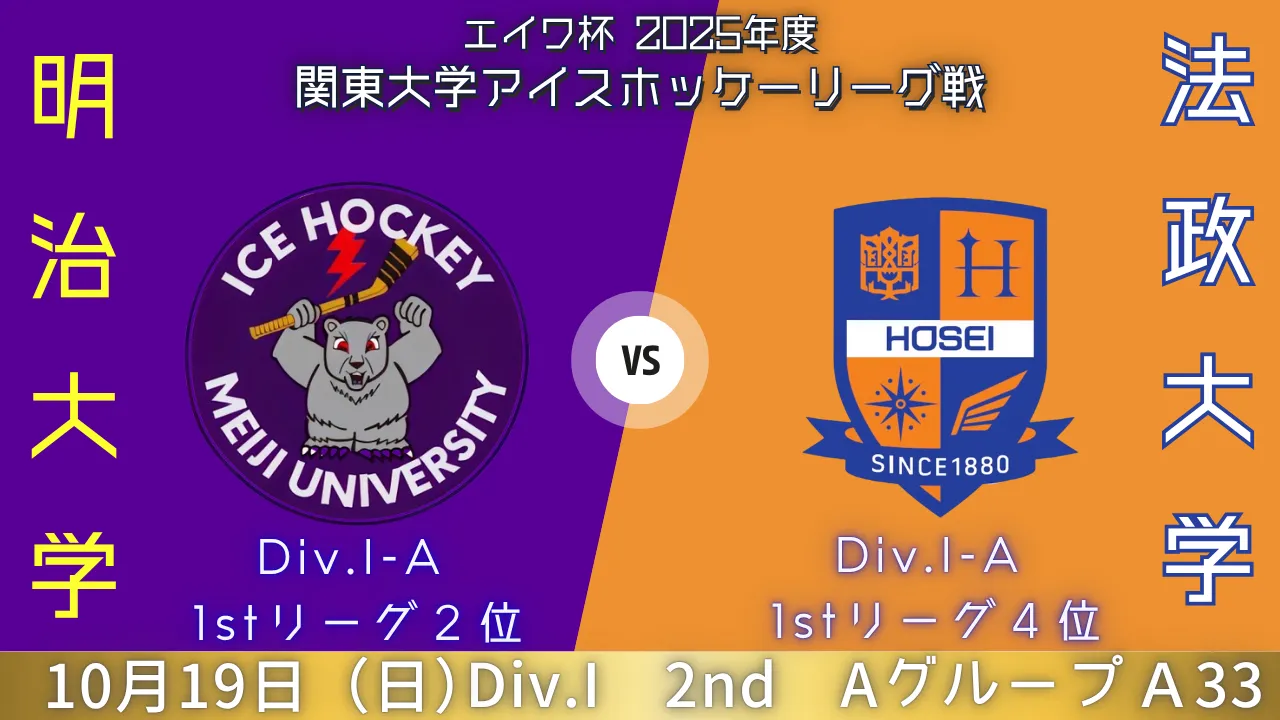 2025年10月19日(日)|エイワ杯 2025年度 関東大学アイスホッケーリーグ戦|A33|明治大学 vs 法政大学
