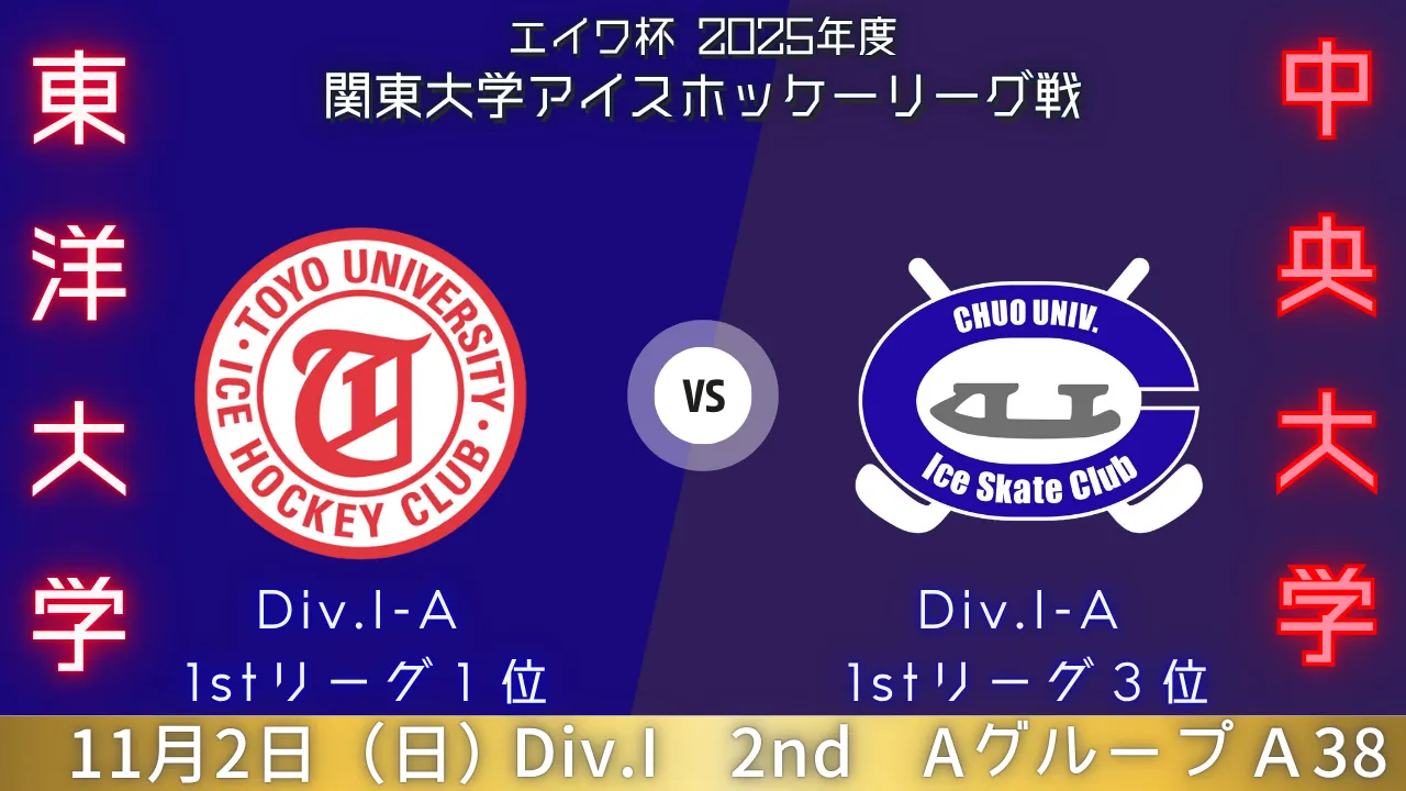 2025年11月2日(日)|エイワ杯 2025年度 関東大学アイスホッケーリーグ戦|A38|東洋大学 vs 中央大学