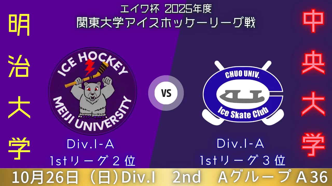 2025年10月26日(日)|エイワ杯 2025年度 関東大学アイスホッケーリーグ戦|A36|明治大学 vs 中央大学