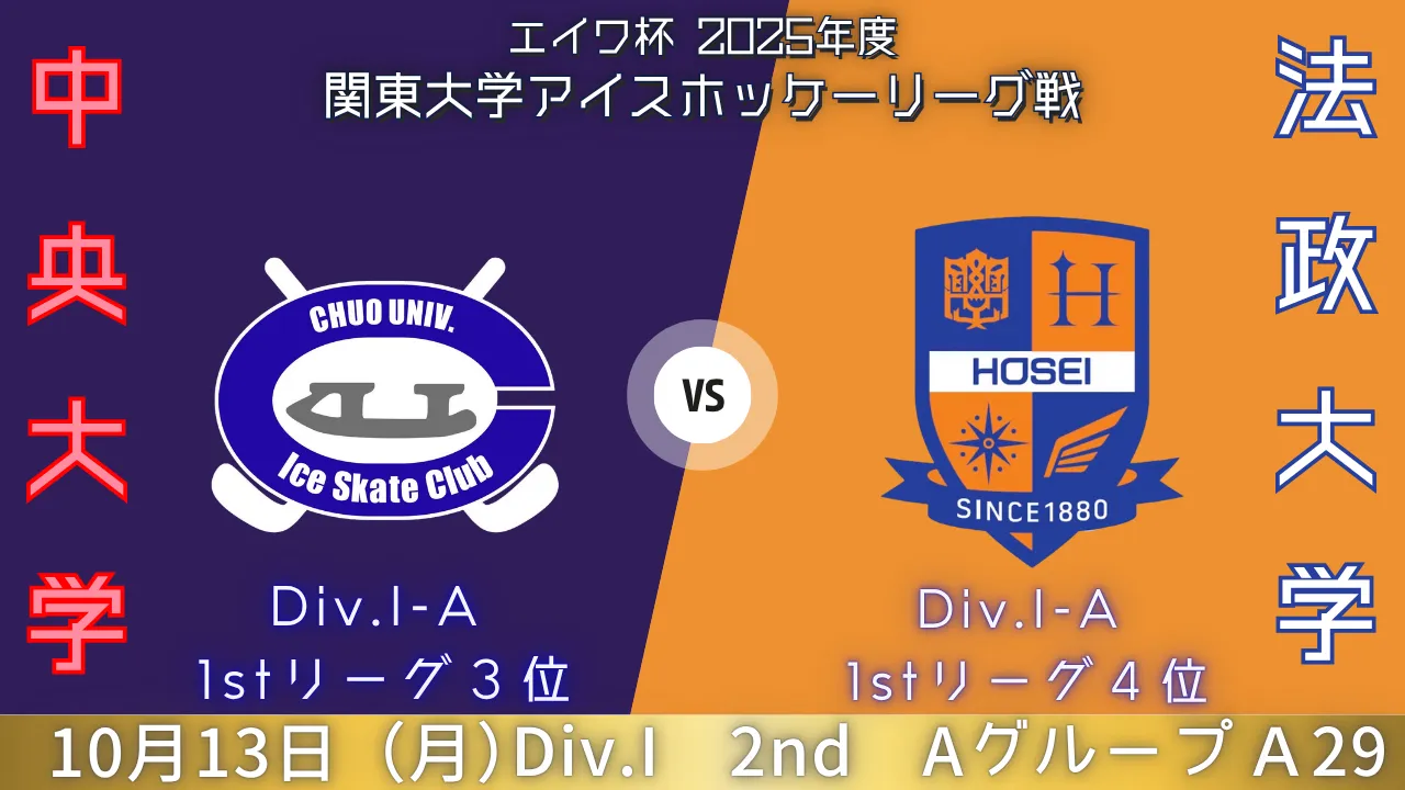 2025年10月13日(月)|エイワ杯2025年度 関東大学アイスホッケーリーグ戦|A29|中央大学 vs 法政大学