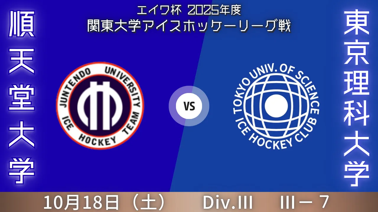 2025年10月18日(土)|エイワ杯 2025年度 関東大学アイスホッケーリーグ戦|Ⅲ-7|順天堂大学 vs 東京理科大学