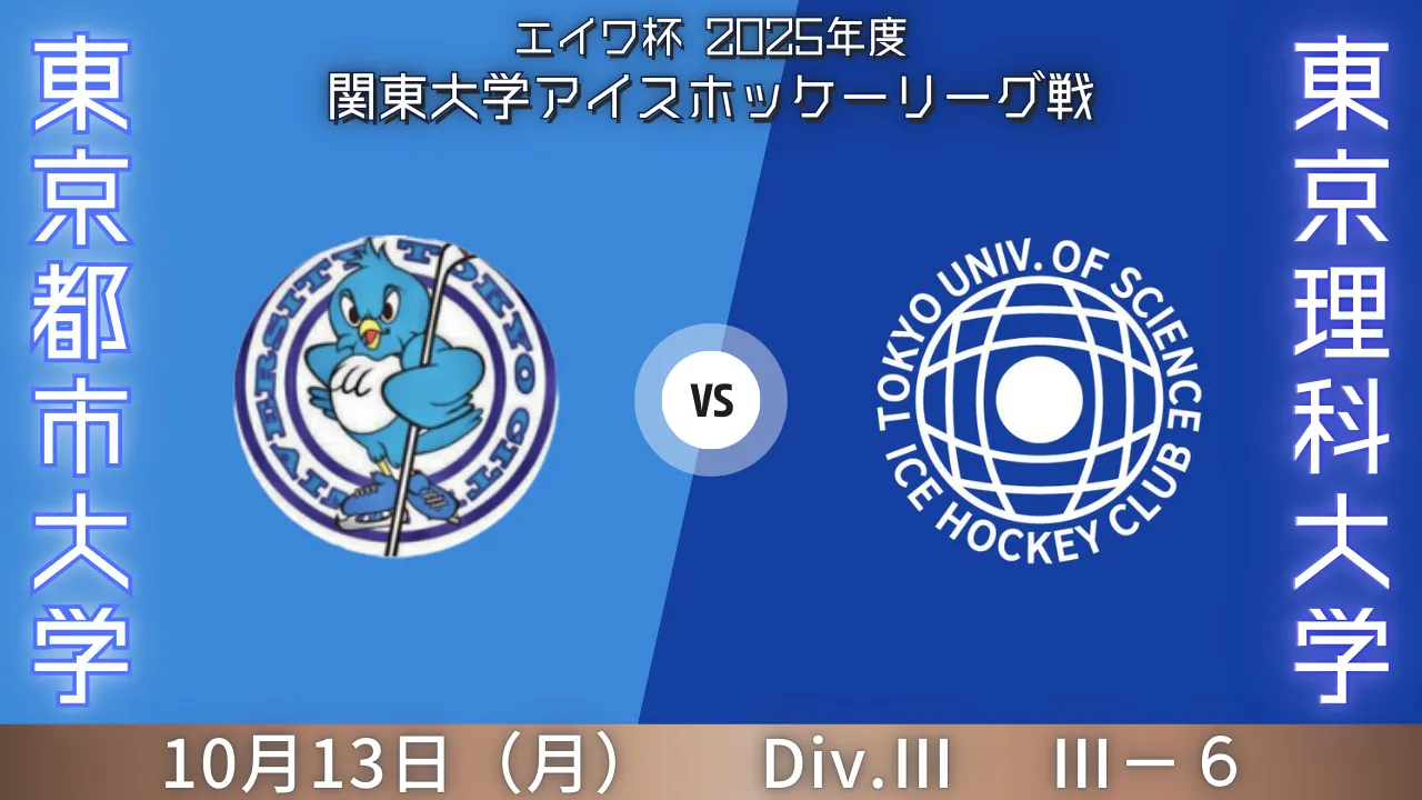 2025年10月13日(月)|エイワ杯 2025年度 関東大学アイスホッケーリーグ戦|Ⅲ-6|東京都市大学 vs 東京理科大学