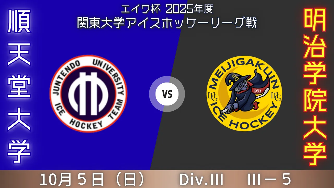 2025年10月5日(日)|エイワ杯 2025年度 関東大学アイスホッケーリーグ戦|Ⅲ-5|順天堂大学 vs 明治学院大学